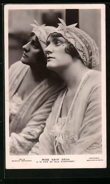 AK Schauspielerin Enid Bell mit einer Spitzenhaube