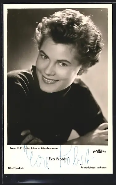 AK Schauspielerin Eva Probst am Lächeln, mit original Autograph