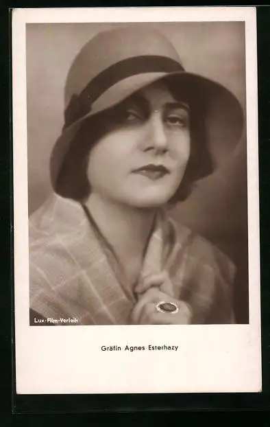 AK Schauspielerin Gräfin Agnes Esterhazy mit einem Hut