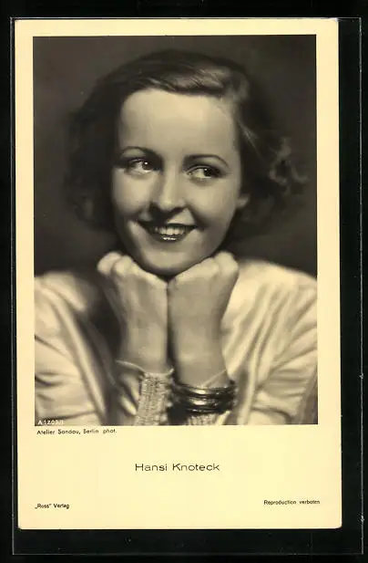 AK Schauspielerin Hansi Knoteck lächelnd mit geballten Fäusten