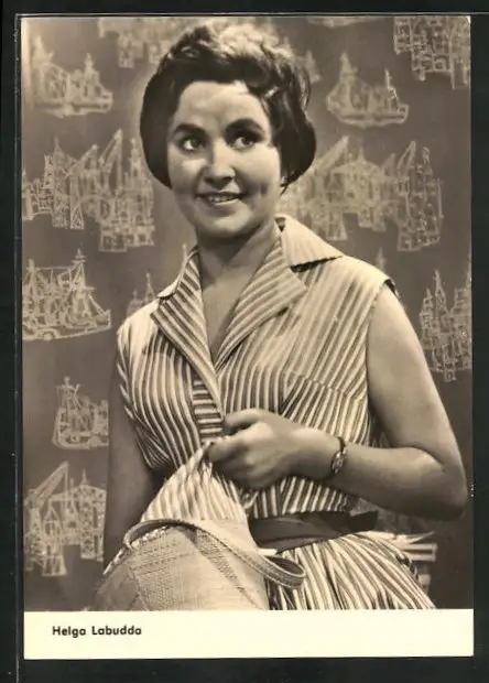 AK Schauspielerin Helga Labudda in gestreiftem Sommerkleid