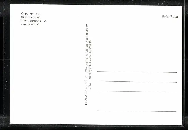 Personenbezogene Daten auf der Rückseite der Karte wurden durch blauen Textmarker unkenntlich gemacht. Die blauen Stellen sind auf die Vorderseite durchgeweicht und wirken sich negativ auf das Postkartenfoto aus