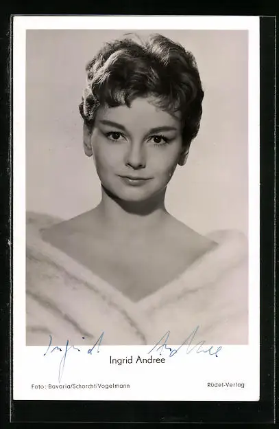 AK Schauspielerin Ingrid Andree mit Pelzstola, mit original Autograph