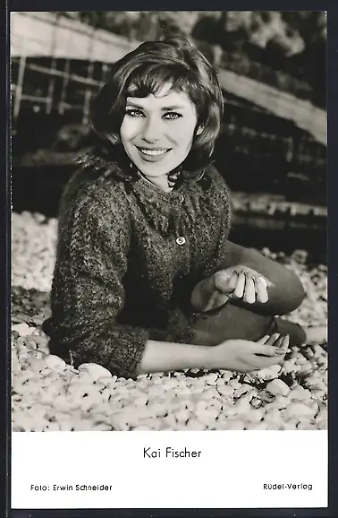 AK Schauspielerin Kai Fischer liegend in einer Strickjacke