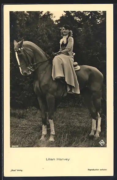 AK Schauspielerin Lilian Harvey zu Pferd