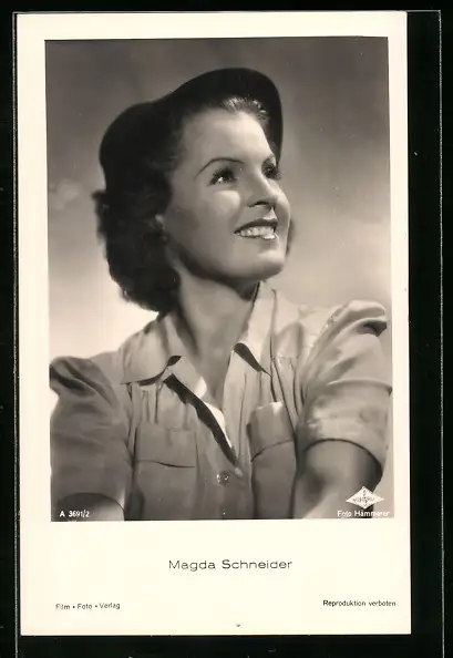 AK Schauspielerin Magda Schneider lächelnd nach oben blickend