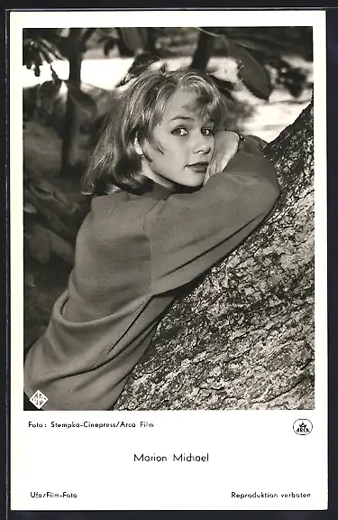 AK Schauspielerin Marion Michael lehnt an einem Baum