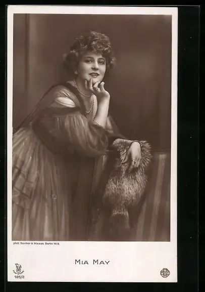 AK Schauspielerin Mia May stützt sich an Stuhl ab