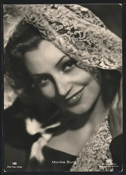 AK Schauspielerin Monika Burg lugt unterm Schleier hervor