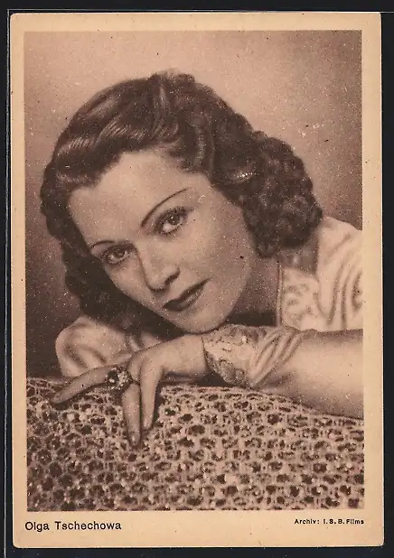 AK Schauspielerin Olga Tschechowa, auf einer Lehne liegend