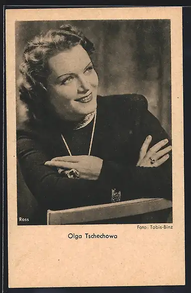 AK Schauspielerin Olga Tschechowa, sitzend, die Arme verschränkt