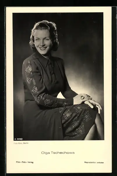 AK Schauspielerin Olga Tschechowa sitzend porträtiert