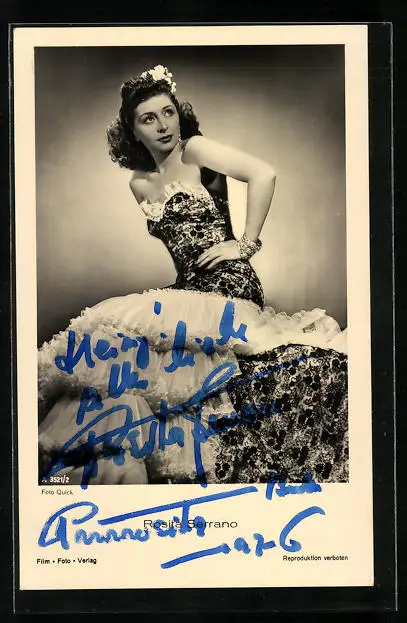 AK Schauspielerin Rosita Serrano im Rüschenkleid, Autograph