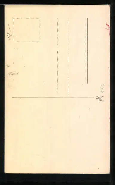 Personenbezogene Daten auf der Rückseite der Karte wurden durch blauen Textmarker unkenntlich gemacht. Die blauen Stellen sind auf die Vorderseite durchgeweicht und wirken sich negativ auf das Postkartenfoto aus