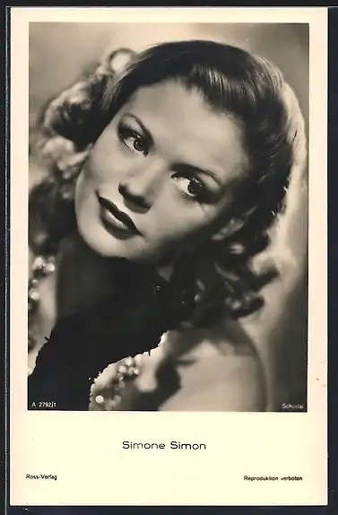 AK Schauspielerin Simone Simon mit schwarzen Handschuhen