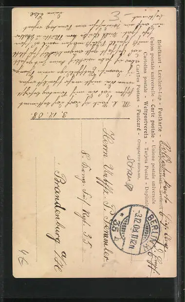 alte Ansichtskarte, gelaufen als Soldatenkarte 1908, guter Zustand