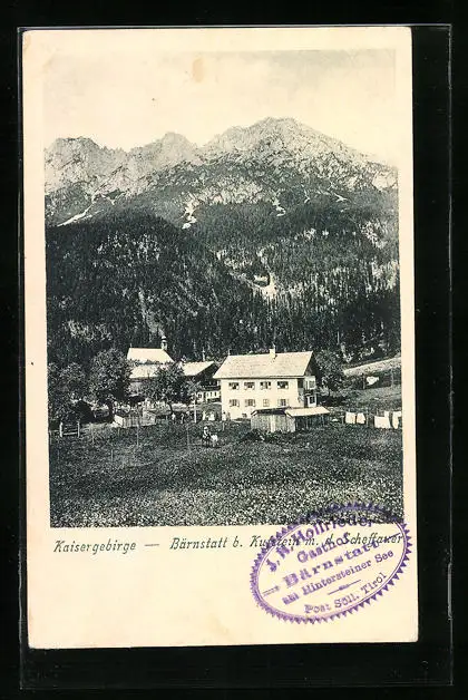 AK Scheffau-Bärnstatt, Ortsansicht gegen Kaisergebirge