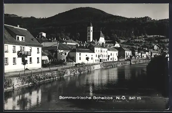AK Scheibbs /N.-Ö., Uferpartie mit Brücke
