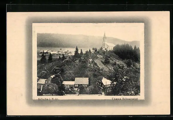 AK Scheibe /Thür., Oberes Schwarzatal, Gesamtansicht, Kirche