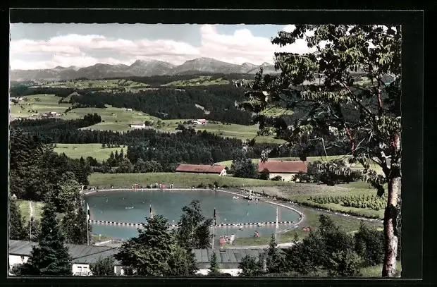 AK Scheidegg, Alpenfreibad mit Blick in die Allgäuer Alpen