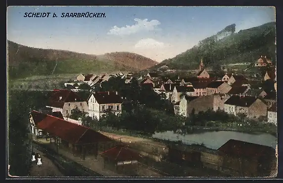 AK Scheidt b. Saarbrücken, Teilansicht mit Bahnhof