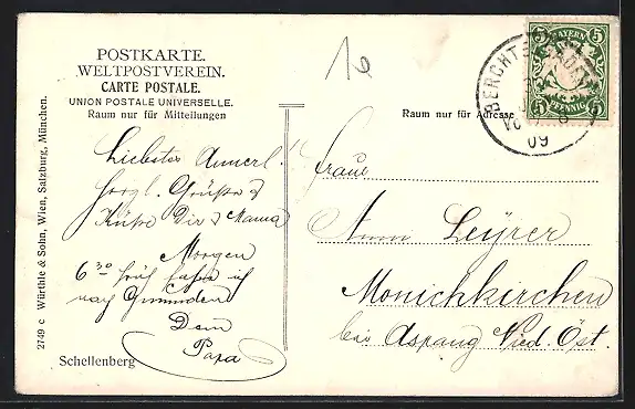 alte Ansichtskarte, gelaufen 1909, guter Zustand
