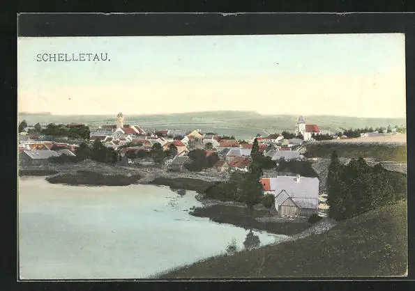 AK Schelletau, Gesamtansicht vom Ort aus der Vogelschau