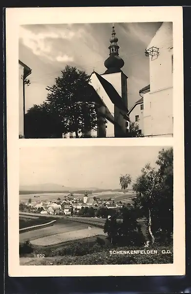 AK Schenkenfelden, Ansicht der Kirche, Ortsansicht aus der Ferne