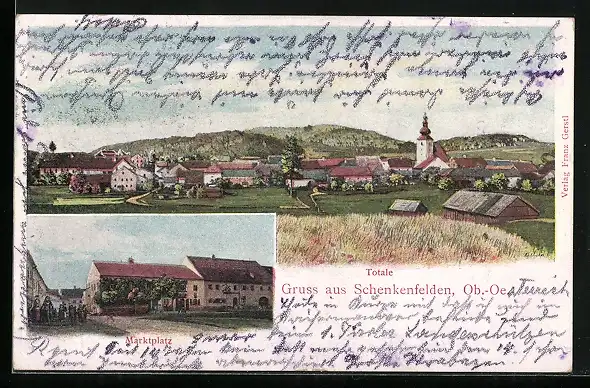 AK Schenkenfelden, Totalansicht mit Hinterland, Marktplatz
