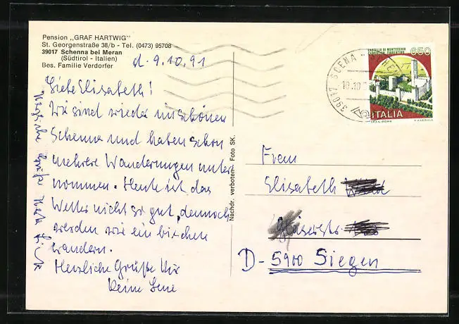 alte Ansichtskarte, gelaufen 1991, guter Zustand