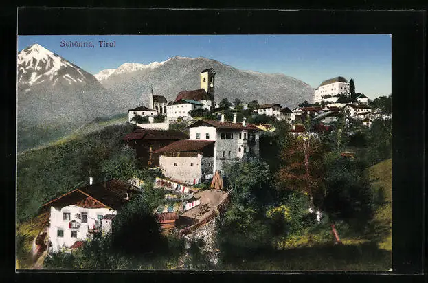 AK Schenna, Ortsansicht und Gipfelpanorama