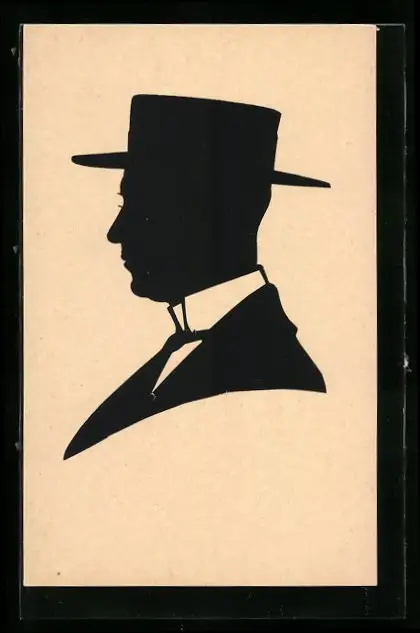 AK Scherenschnitt, Herr mit Hut im Profil