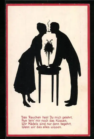 AK Scherenschnitt, Herr und Dame rauchen Zigaretten