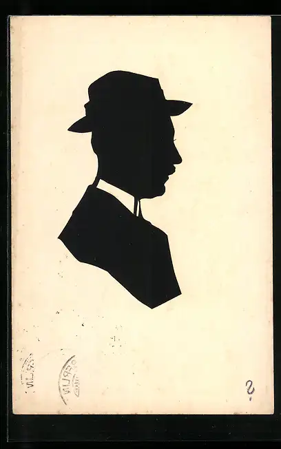 AK Scherenschnitt, Mann mit einem Hut