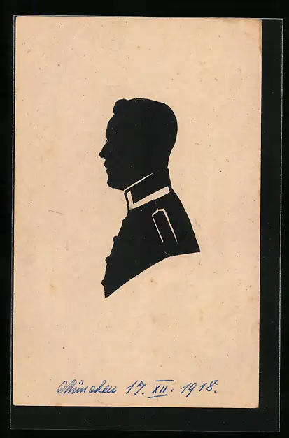 AK Scherenschnitt, Soldat in Uniform im Profil