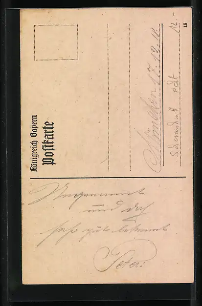 Personenbezogene Daten auf der Rückseite der Karte wurden durch blauen Textmarker unkenntlich gemacht. Die blauen Stellen sind auf die Vorderseite durchgeweicht und wirken sich negativ auf das Postkartenfoto aus