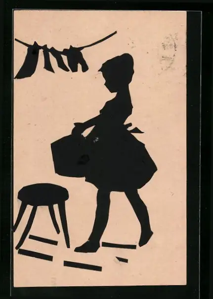 AK Scherenschnitt eines Mädchens bei der Wäsche