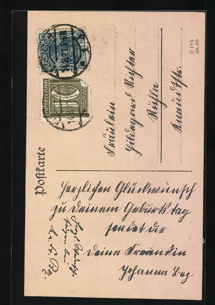 alte Ansichtskarte, gelaufen 1921, Stempelspur, guter Zustand