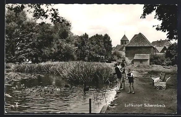 AK Schermbeck / Niederrhein, Uferpartie mit Enten