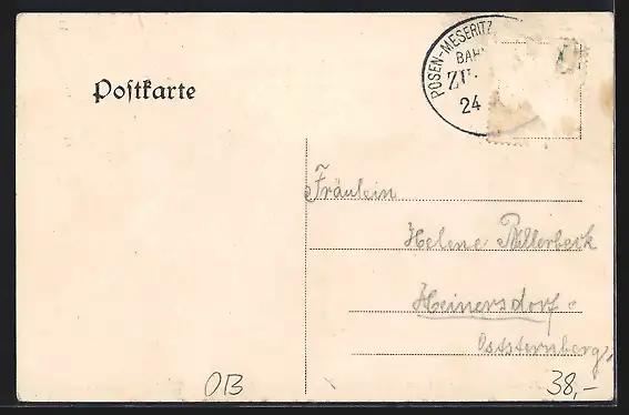 alte Ansichtskarte, gelaufen, Briefmarke entfernt, guter Zustand