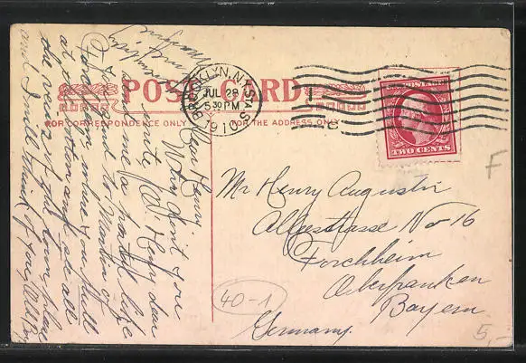 gelaufen 1928, Eckbug rechts oben, guter Zustand