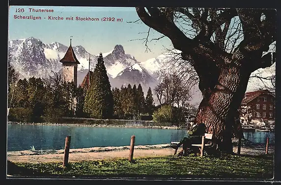 AK Scherzligen am Thunersee, Kirche mit Stockhorn