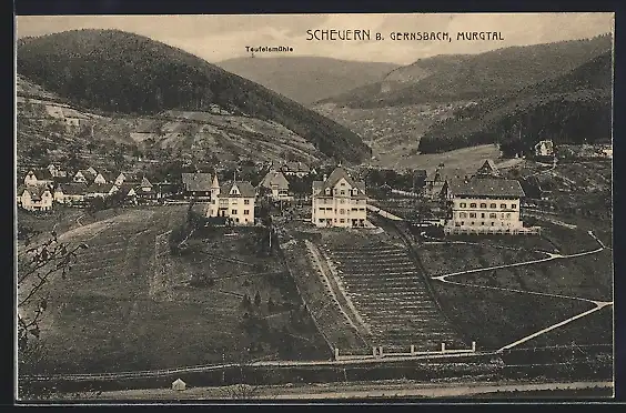 AK Scheuern b. Gernsbach, Ortspartie mit Teufelsmühle