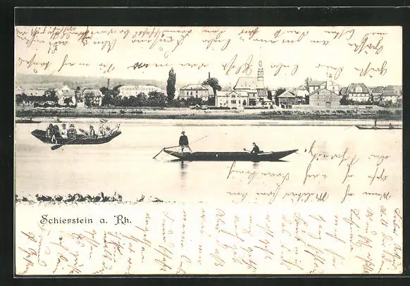 AK Schierstein a. Rh., Flusspartie mit Ruderbooten