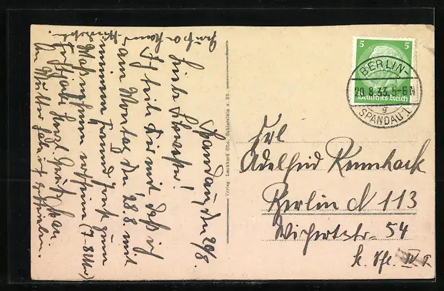 gelaufen 1933, Eckknick li. oben, Bugspur li. oben, obere Kante beschnitten