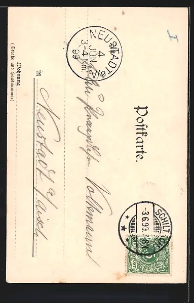 alte Ansichtskarte, gelaufen 1899, guter Zustand