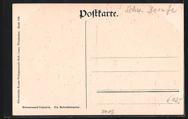 Personenbezogene Daten auf der Rückseite der Karte wurden durch blauen Textmarker unkenntlich gemacht. Die blauen Stellen sind auf die Vorderseite durchgeweicht und wirken sich negativ auf das Postkartenfoto aus