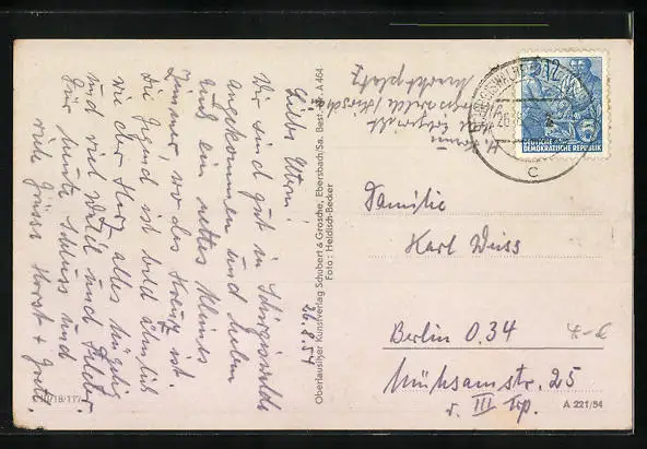 alte Ansichtskarte, gelaufen 1954, guter Zustand