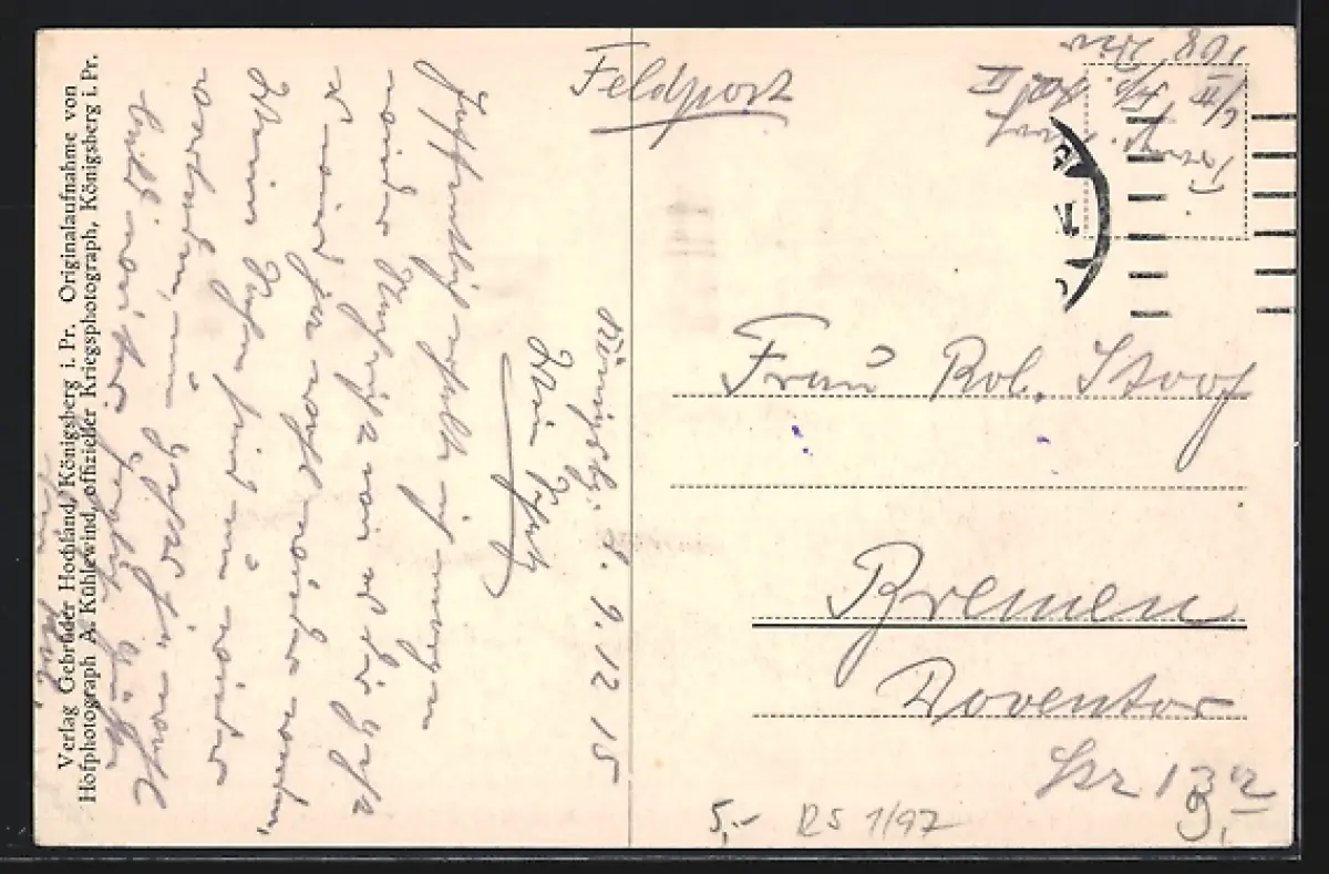 alte Ansichtskarte, gelaufen 1915 als Feldpost, Eckknick rechts unten, sonst guter Zustand