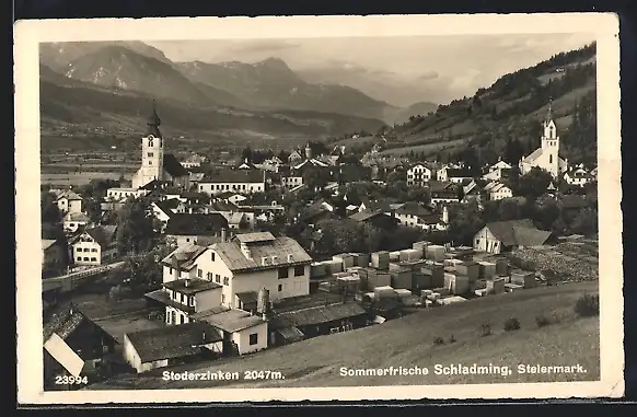 AK Schladming /Steiermark, Ortsansicht mit Stoderzinken